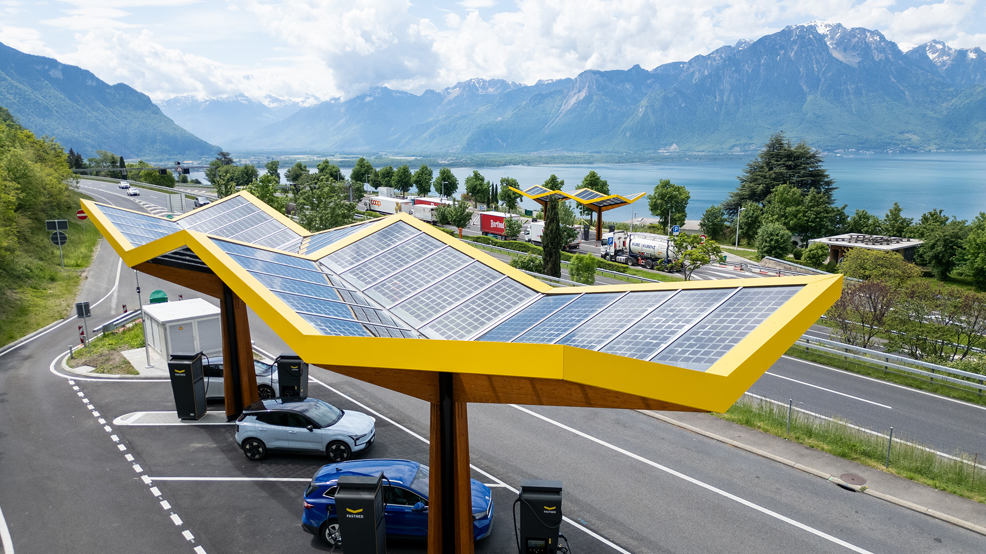 Pour encourager la transition vers la mobilité électrique, l’OFROU a mis à disposition d’acteurs privés, via deux appels à candidatures lancés en 2018 et 2024, 100 aires de repos et 55 parcelles le long des routes nationales pour la construction de stations et de hubs de recharge rapide. Afin d’accompagner l’électrification croissante du trafic lourd, l’OFROU prévoit également de lancer prochainement un appel à projets pour des hubs de recharge rapide dédiés aux camions électriques.